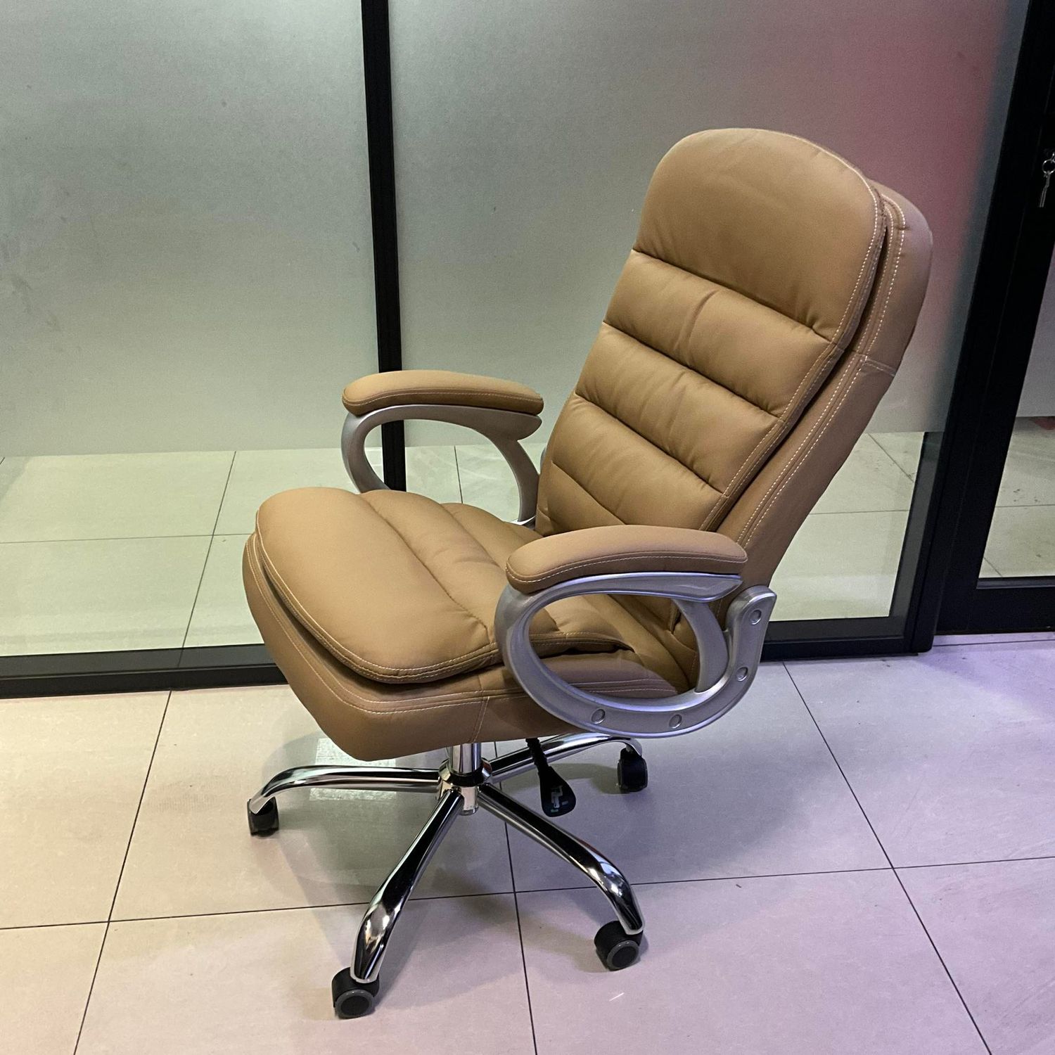 Материал: Сайжруулсан лидрин гадаргуутай, төмөр хөлтэй. Үйлдэл: Дээш, доош болно. 360 градус эргэнэ. Арагшаа их биеээрээ буюу суудлаараа налж түгжигдэнэ. Даац: 250кг Хүргэлт: 10,000₮