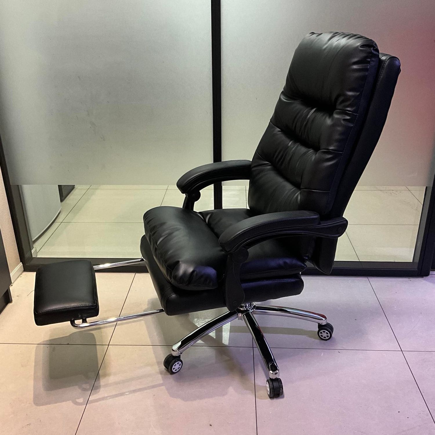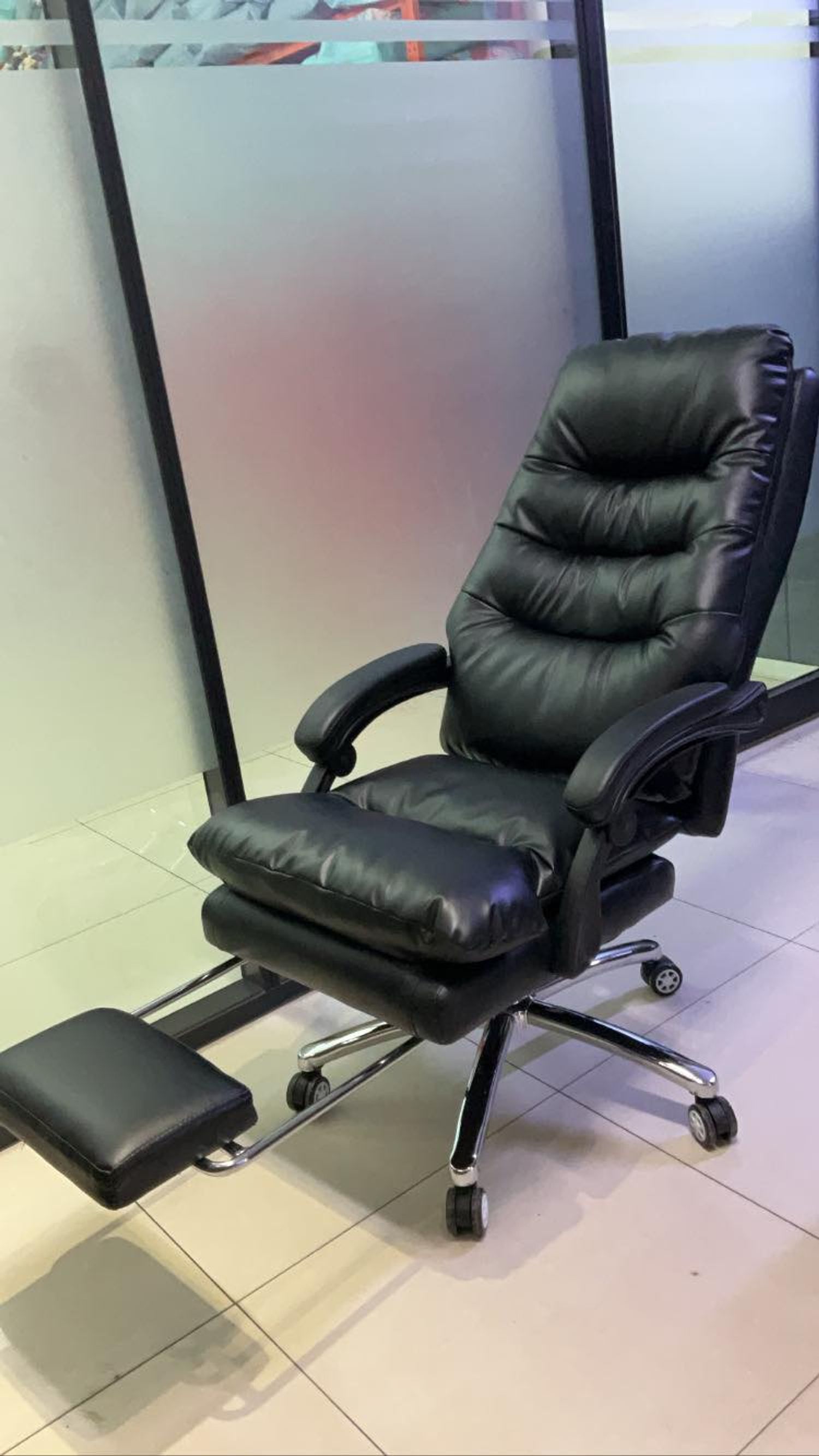 Хөл амраагчтай. Материал: Лидрин гадаргуутай, төмөр хөлтэй. Үйлдэл: Дээш, доош болно. 360 градус эргэнэ. Арагшаа налж түгжигдэнэ. Хөл амраагчтай. Даац: 200кг Хүргэлт: 10,000₮